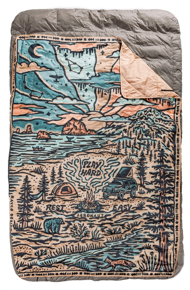 This is pure comfort on-the-go. With a touch of insulation between softweave fabrics, it packs down tiny and can travel with you on a plane, a road trip, camping, hammocking, or at home watching TV. Use it as a pillow, a sheet, a light blanket, or wrap anytime you need a little boost of warmth.